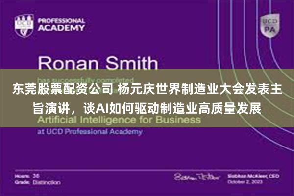 东莞股票配资公司 杨元庆世界制造业大会发表主旨演讲,谈AI如何驱动制造业高质量发展
